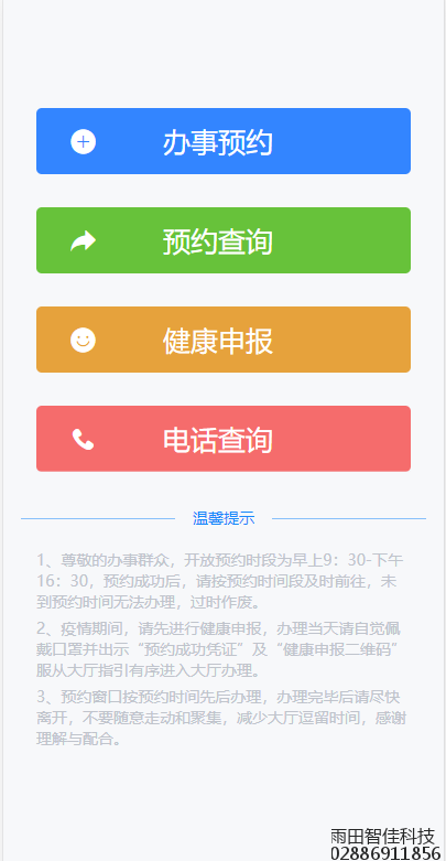 3、支持预约登记、办件统计、申请人健康统计等功能;